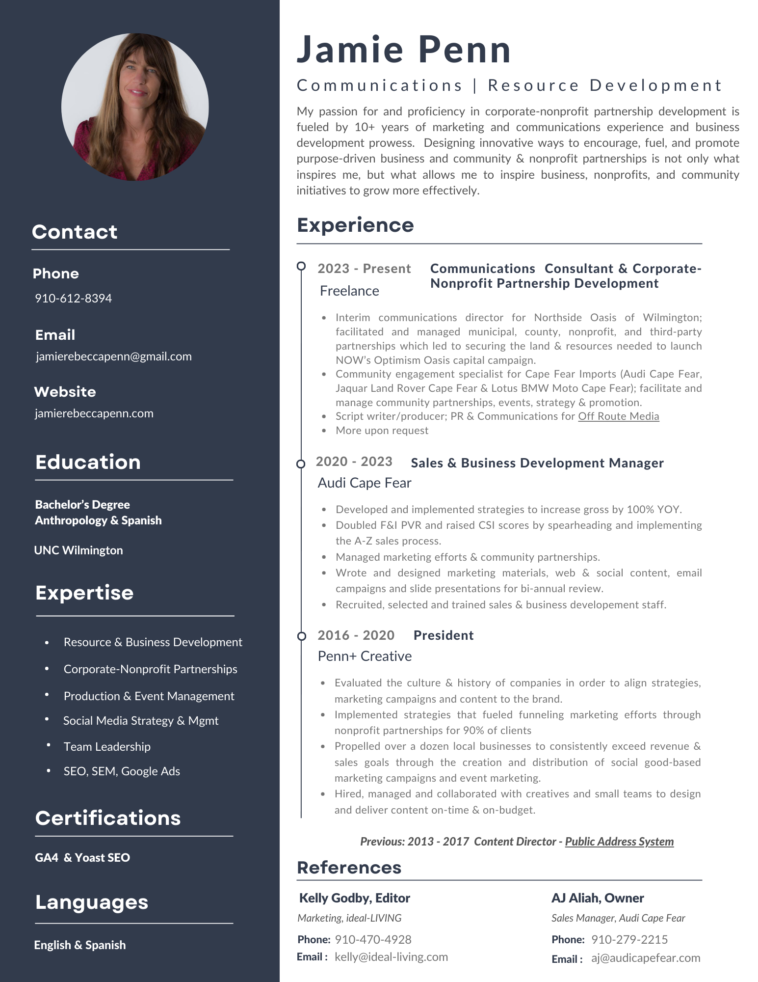 Jamie Penn is a one-of-a-kind dynamo...one who takes care of things before you realize they need taking care of. I worked with Jamie on a high stakes, high expectations project that required someone as creatively-minded as they are production-minded. Jamie couldn't have been a better partner for the work. Thanks to her unique balance of organization and instinct, I knew our clients would be well served and our conceptual visions realized. Jamie is one of those rare finds--someone who is able to see both the big picture and the essential minute details. She's a creative director's best friend. And she brings a tremendous amount of heart to her work. What a privilege!